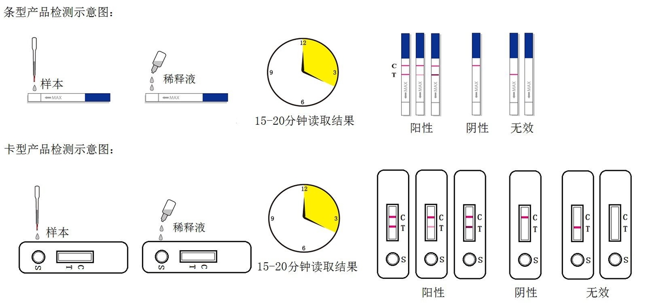 是嘔吐毒素最簡便的檢測方法,檢測不需要配套儀器,樣品處理簡單,五到十分鐘就可以看到檢測結(jié)果??梢愿鶕?jù)G、T線,初步確定所測樣本毒素含量范圍,但不能給出具體數(shù)值。價(jià)格最低、沒有國標(biāo)支持,適合企業(yè)初檢使用。