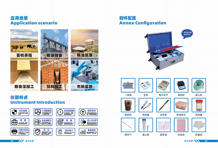 深圳市芬析儀器制造有限公司(深芬儀器)研發(fā)生產(chǎn)的CSY-YG701嘔吐毒素快速測(cè)定儀應(yīng)用競(jìng)爭(zhēng)抑制免疫層析的原理,通過(guò)檢測(cè)線熒光定量卡中的熒光強(qiáng)弱程度,定量分析待檢樣品中嘔吐毒素殘留含量,能夠快速檢測(cè)玉米、小麥、大米、大麥、小米和燕麥等谷物、飼料、面粉、食用油、調(diào)味品等食品中嘔吐毒素含量,適用于糧油監(jiān)測(cè)中心、糧油飼料生產(chǎn)加工、食品加工貿(mào)易、畜禽養(yǎng)殖戶自查、質(zhì)監(jiān)部門用于市場(chǎng)快速篩查等。